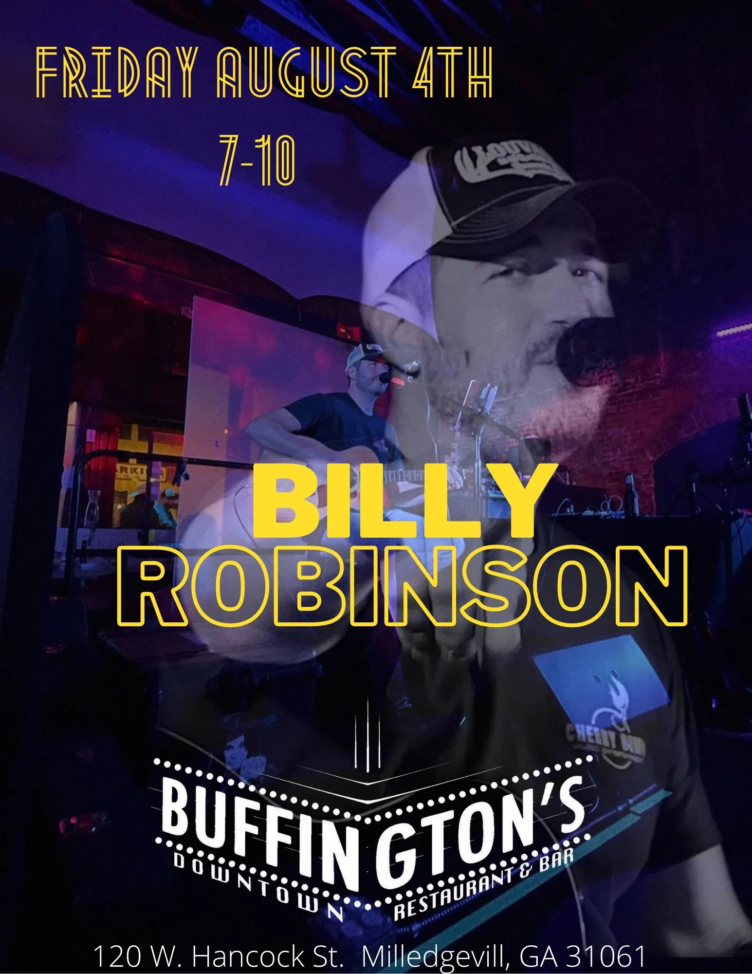 Billy Robinson is live at Buffington’s! Head to Downtown Milledgeville for some dinner music and drinks!
