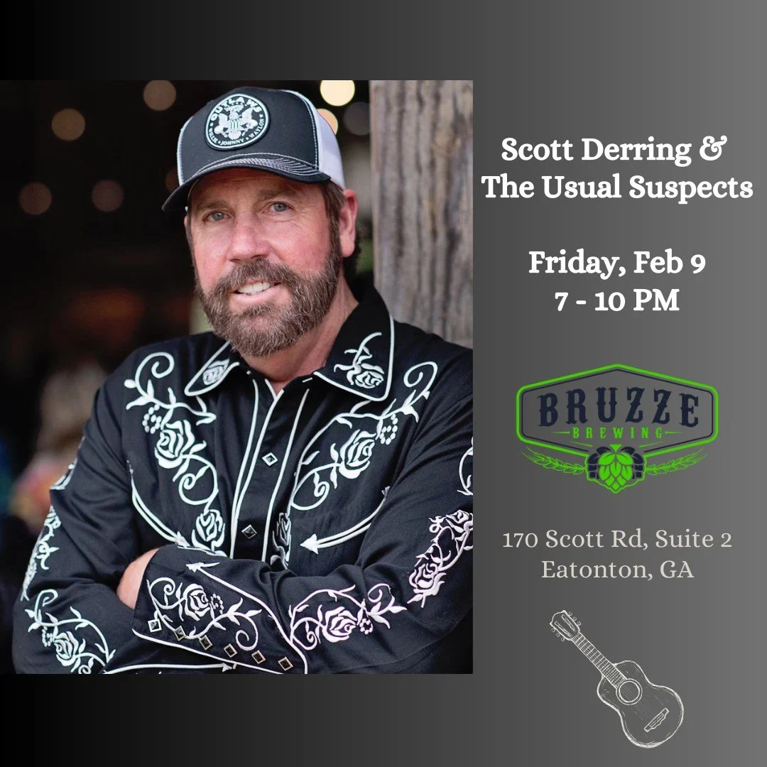 Join Bruzze Brewing on Friday, Feb 9, for a night of incredible entertainment with Scott Derring and The Usual Suspects. From 7PM to 10PM, groove to the captivating music of this talented band as you enjoy delicious craft beers at Bruzze Brewing. Don't miss out on this unforgettable night of live music and good vibes.