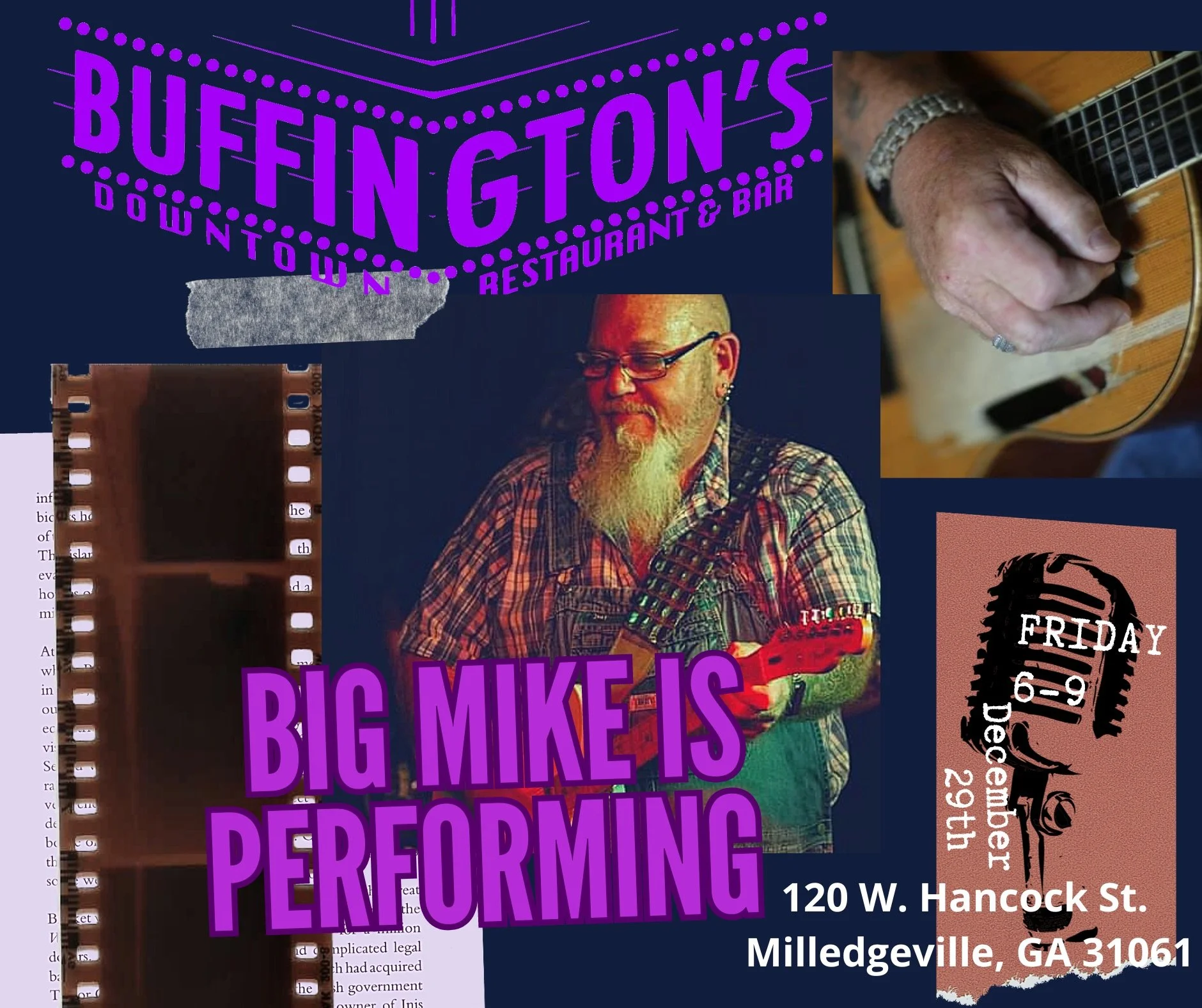 Join Buffington's on December 29th from 6pm to 9pm for a delightful evening of dinner and live music by the talented Big Mike. Enjoy a delicious meal and let the soothing sounds of Big Mike's music create the perfect ambiance for a memorable night out with friends or loved ones. Don't miss this wonderful opportunity to relax and unwind while experiencing the exceptional talents of Big Mike at Buffington's.