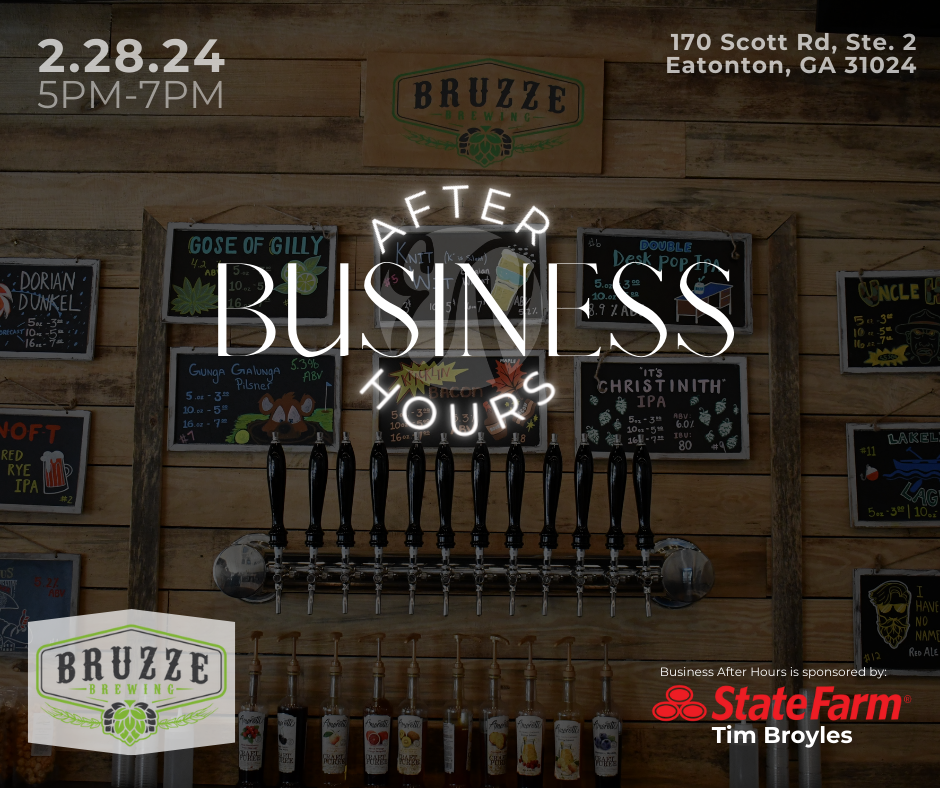 Business After Hours // Eatonton-Putnam Chamber Of Commerce Wednesday, February 28, 2024 5:00 PM 7:00 PM Bruzze Brewing 170 Scott Road, Suite 2 Eatonton, Georgia 31024 United States (map) Google Calendar ICS The Eatonton-Putnam Chamber of Commerce is heading back to the amazing Bruzze Brewing for their February Business After Hours! Join them on 2.28.24 from 5pm-7pm for a fun filled evening!