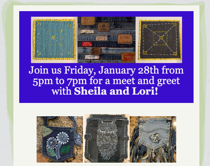 Sheila Collins and Lori Archer met through teaching English as a Second Language (ESL) at Northside Baptist Church in Milledgeville, GA. They became great friends and realized they both enjoyed crafting, sewing, and creating art from thrift store finds. Over the past year, they have designed many useful items from repurposed denim.