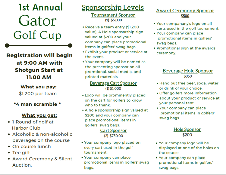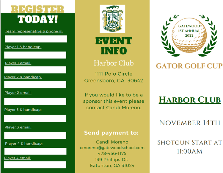 Gator Golf Cup Monday, November 14, 2022 9:00 AM 3:00 PM Harbor Club Lake Oconee 1111 Polo Circle Greensboro, GA, 30642 United States (map) Google Calendar ICS Gator Golf Player Registration Gator Golf Sponsorship