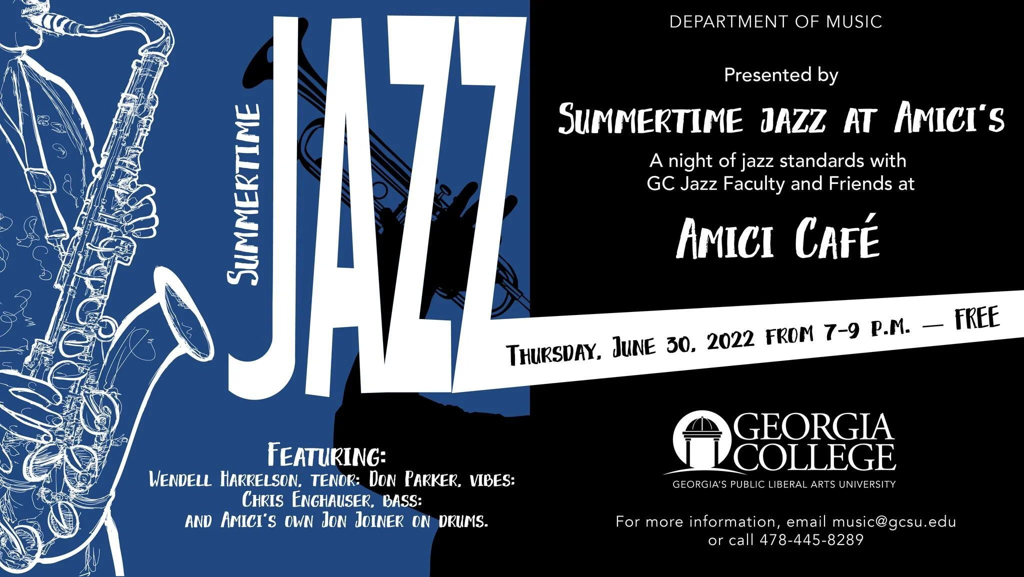 GCSU Jazz is performing live at Amici Milledgeville on Thursday, June 30th from 7:00pm to 9:00pm!