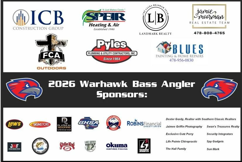 The Warhawk Bass Anglers are heading to the GHSA State Championship! This event includes official practice and tournament days for all qualified anglers. Supported by a dedicated community of local sponsors, student athletes will compete for the state title on the water. Join in cheering on the team as they represent their school and community at this elite level.