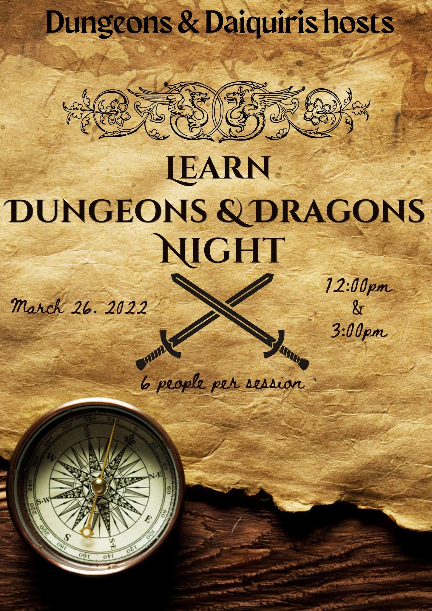 Learn how combat works, how to make characters & so much more in two learning sessions, 12pm & 3pm!