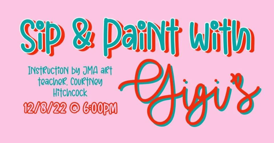 Sip & Paint Thursday, December 8, 2022 6:00 PM 8:00 PM Gigi's by Grace Ann Designs 2400 North Columbia Street Milledgeville, GA, 31061 United States (map) Google Calendar ICS head over to Gigi’s for a fun evening of painting instructed by Courtney Hitchcock. Class includes light appetizers and drinks. Limited spots available! Sign up for Sip & Paint