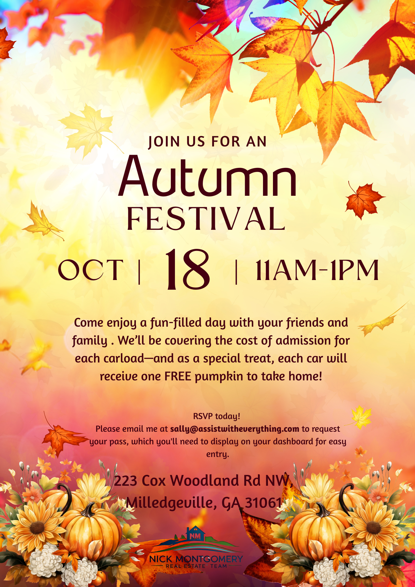 Hey, Lake Sinclair families — Nick Montgomery and team invite you to a cozy, fun-filled fall celebration at Woodland Acres at Robbins Farm! We want to help you celebrate the season in style.
